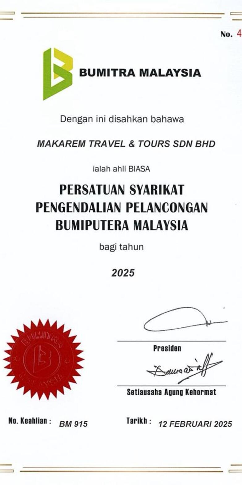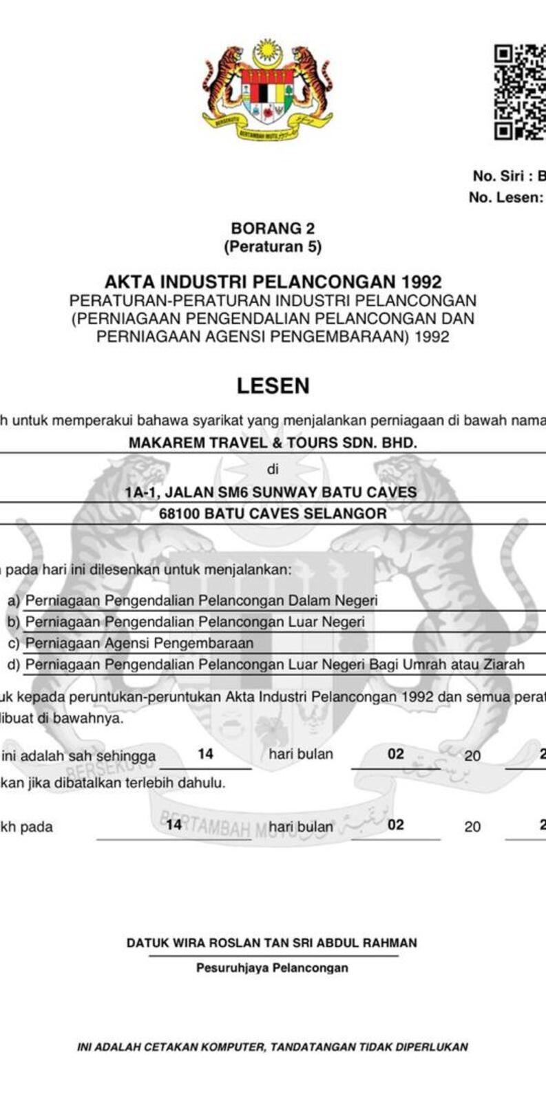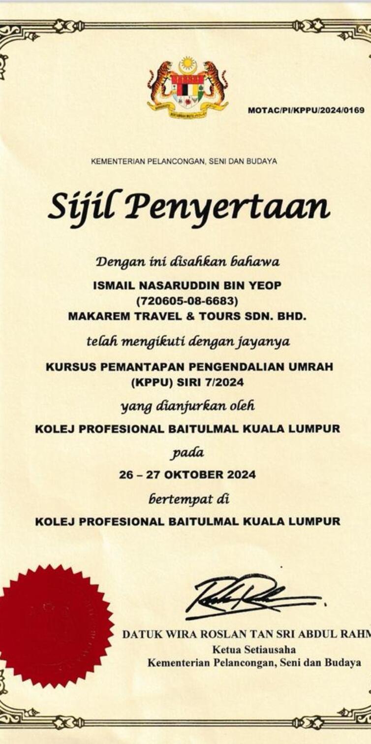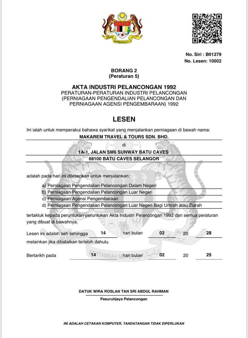 Makarem Travel & Tours Sdn Bhd ialah agensi pelancongan yang berdaftar sejak 15 Mei 2019, berpusat di Sunway Batu Caves, Selangor. Kami menyediakan perkhidmatan pelancongan dan Umrah Ziarah yang berkualiti, selesa dan kompetitif, dengan keutamaan terhadap kepuasan pelanggan.